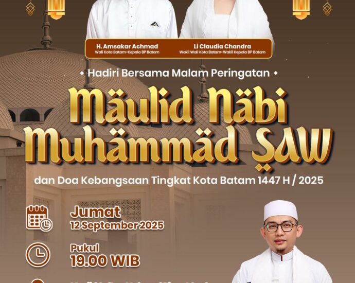 Hari/Tanggal: Jumat, 12 September 2025 / 19 Rabiul Awal 1447 H Waktu: 19.30 WIB Tempat: Masjid Sultan Mahmud Riayat Syah Kota Batam Penceramah: Ustd. Dr. H. Muhammad Hilmi Firdausi, SE.AK.,M.Sc