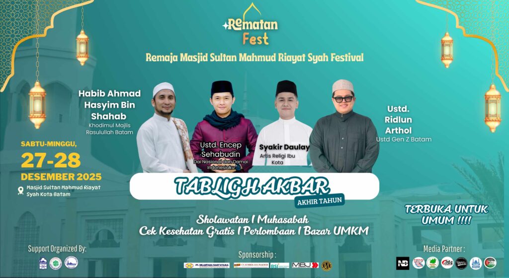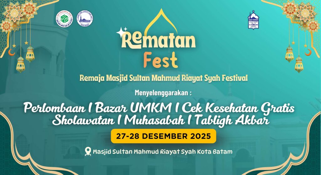 Dalam Rangka menyambut akhir tahun 2025, Remaja Masjid Sultan Mahmud Riayat Syah kota Batam, menyelenggarakan kegiatan “Rematan fest 2025” yang berbeda namun bermakna dengan mengadakan beberapa kegiatan positif dan menarik yang bisa kamu ikuti, kegiatannya antara lain ;
